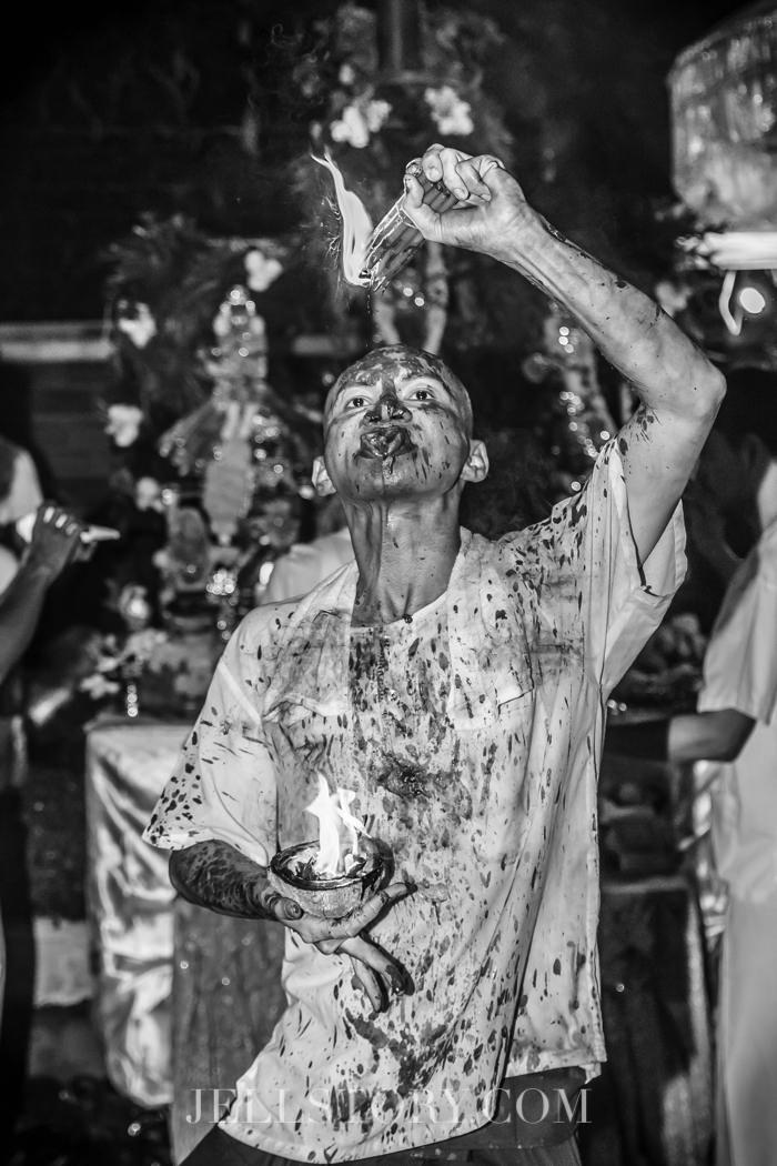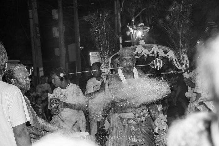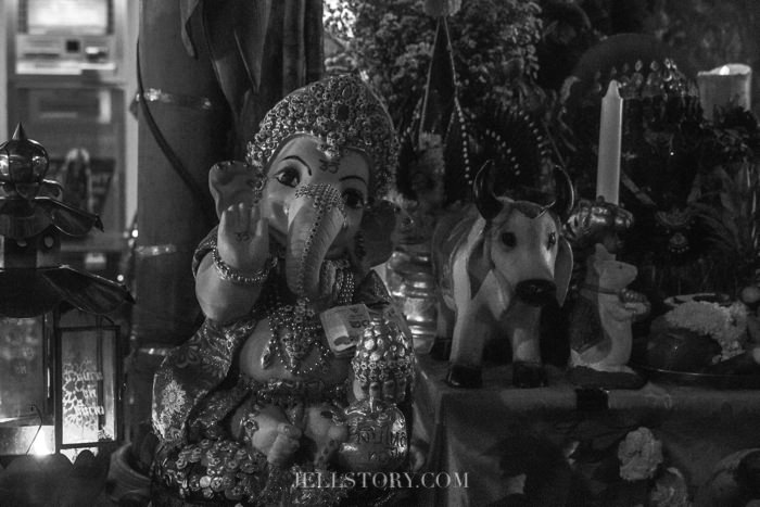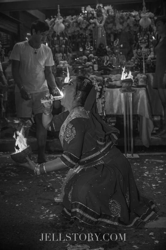 สักประมาณ 1 ทุ่มกว่าๆ ผู้คนเริ่มหนาตามากขึ้น โต๊ะบูชาแต่ละโต๊ะก็ทำหน้าที่สวดบูชาเหล่าทวยเทพ บางโต๊ะถูกจัดประดับประดาอย่างอลังการสวยงาม พร้อมกับมีผู้นำพิธีสวด บ้างก็โปรยดอกไม้ บ้างก็สั่นกระดิ่ง บ้างก็เป่าแตรสังข์.. บางโต๊ะมีนางรำคอยรำถวายทวยเทพที่ตนนับถือ และทำการอัญเชิญทวยเทพลงมาประทานพร …หลายๆโต๊ะจะมีการส่งต่อมอบพลังให้แก่ผู้ที่ศรัทธาในการบูชาเหล่าเทพต่างๆ .. วันนั้นเราจะเห็นเทวรูปของเทพมากหน้าหลายตา ตั้งแต่พระพิฆเนศ พระศิวะ พระนารายณ์ พระแม่ทุรคา(ปางหนึ่งของพระแม่อุมา) พระขันทกุมาร พระลักษณมี เป็นต้น
