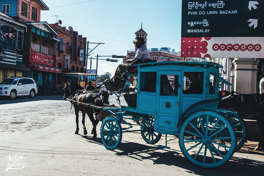 ทิวทัศน์โดยรอบที่ซ่อนตัวอยู่ภายใต้อ้อมกอดของขุนเขาขนาดใหญ่ ทำให้ฉันหลงลืมไปว่านี่หรือคือประเทศพม่า มันควรจะเป็นดินแดนอีกแบบหนึ่งที่ฉันคิดไว้สิ แต่เปล่าเลย พินอูลวินทำให้เราได้กลิ่นอายของเมืองแบบผู้ดีอังกฤษ เสียงกรุบกรับของรถม้าที่ดูน่าสนใจกว่ารถม้าเมืองอื่นๆ เพราะมันเป็นรถม้าที่มีหน้าตาแบบในเทพนิยายเลยยังไงยังงั้น…