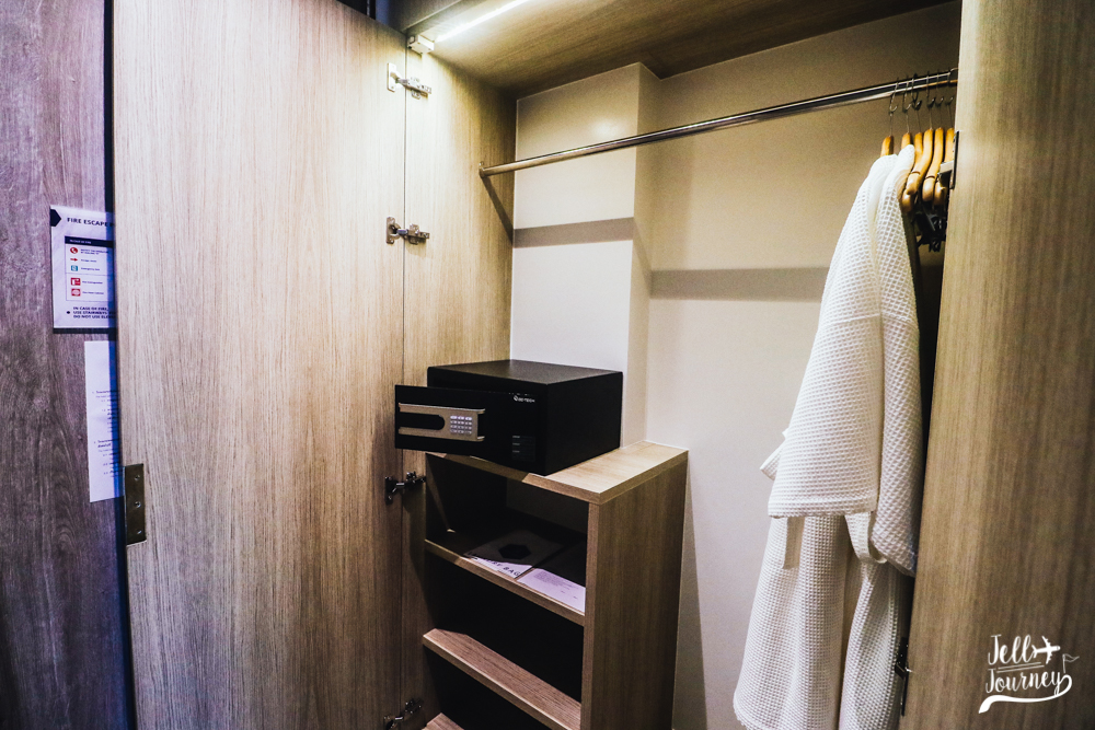 ภายในห้องมีส่วนของตู้เสื้อผ้า ด้านในพร้อมไม้แขวนเสื้อและเสื้อคลุมมาให้ อีกทั้งยังมีตู้เซฟให้ใช้บริการด้วยค่ะ เผื่อคนที่พกของมีค่ามาก็มาเก็บไว้ในนี้ได้เลย