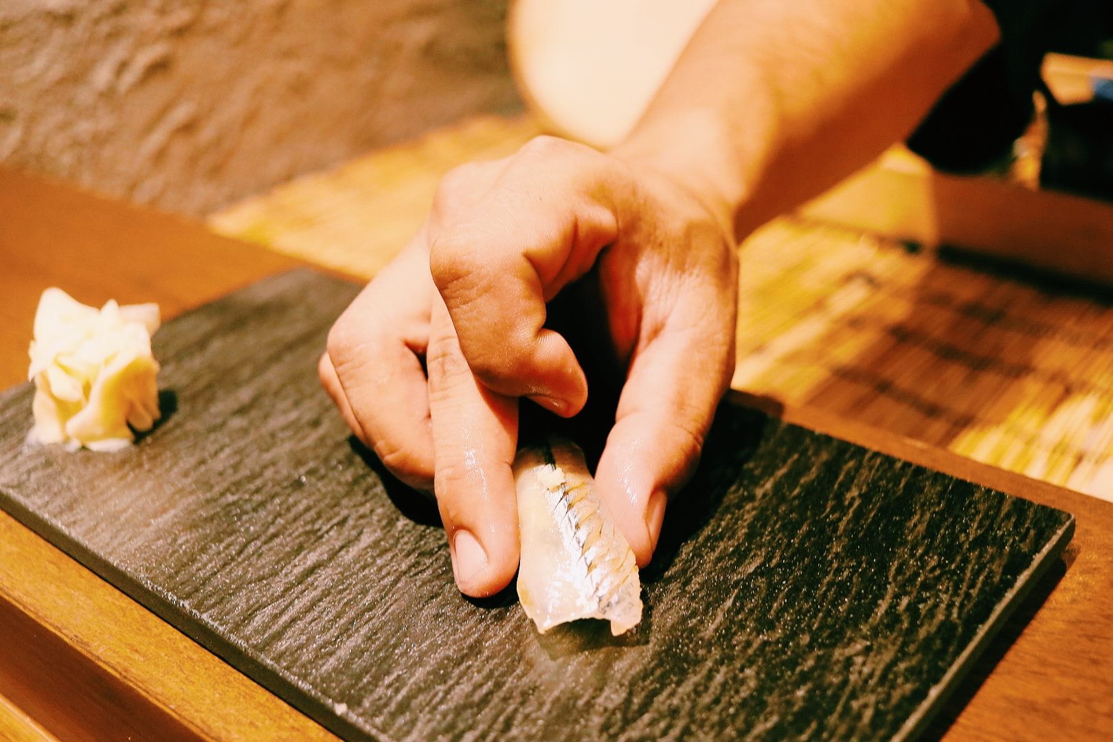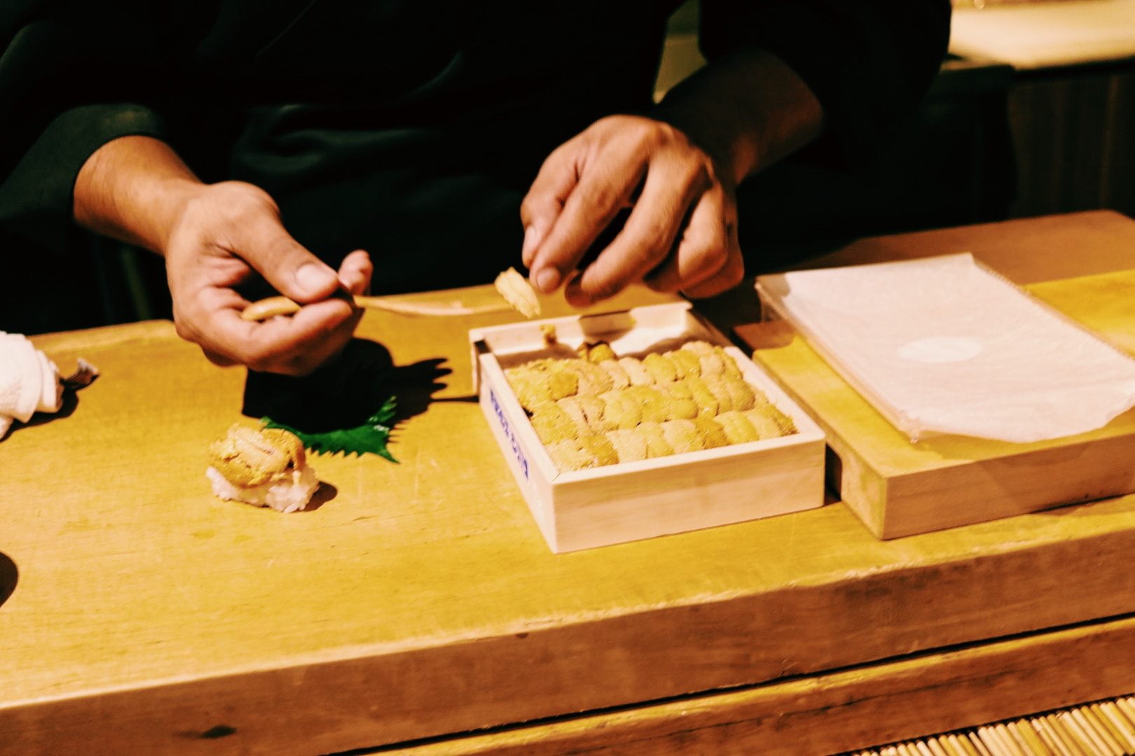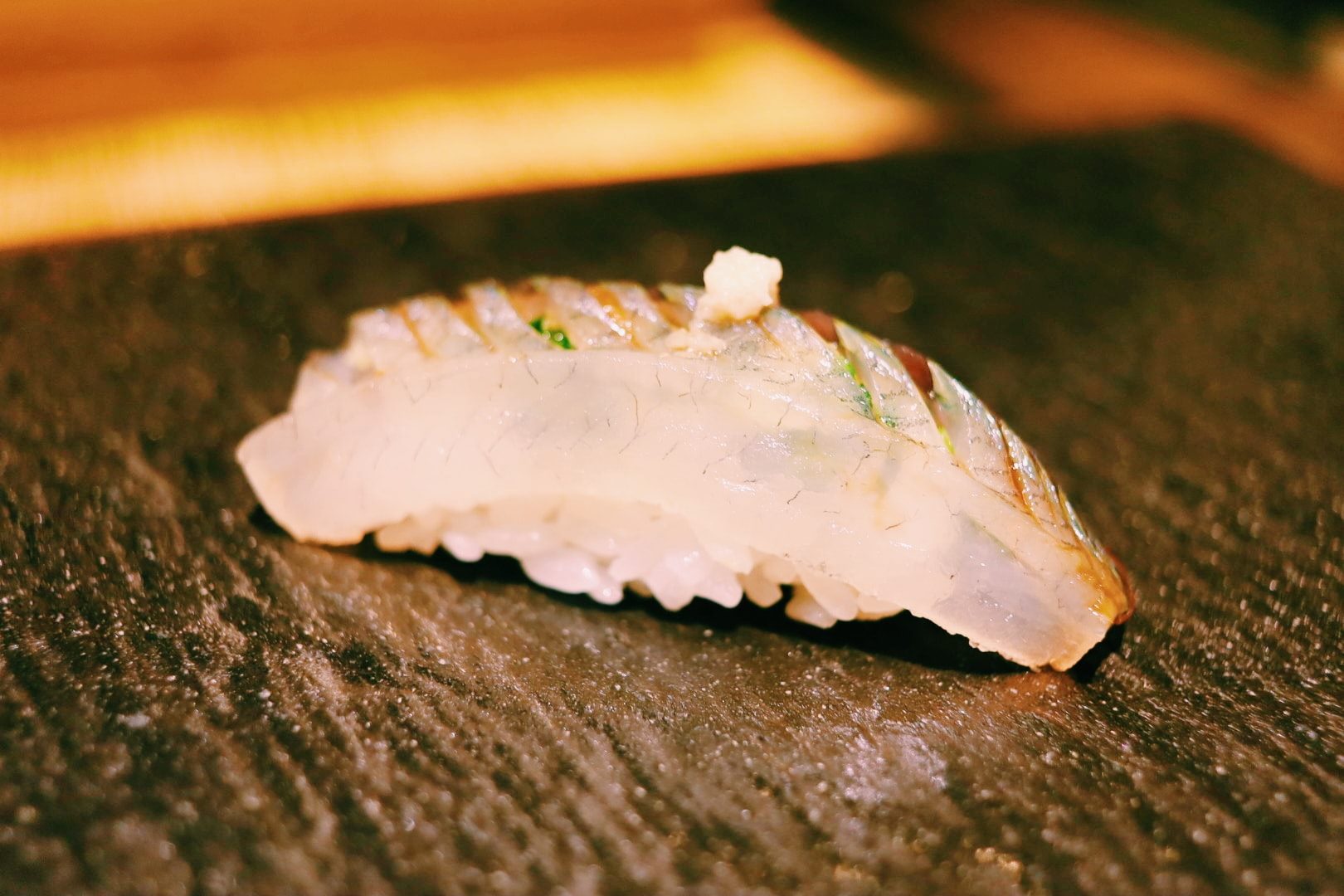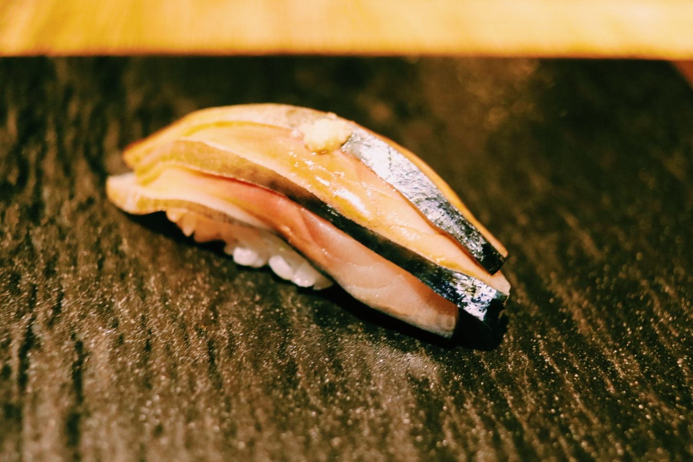 เมนูที่เด็ดมากๆ ไม่ว่าจะเป็น ไข่หอยเม่น, Chutoro ซูชิจากปลา Hon Mugura ที่ส่งตรงมาจากเมือง Chiba ผ่านการบ่มหรือ aging ปั้นพร้อมด้วยข้าวที่หุงด้วยน้ำส้มสายชูแดงซึ่งมีรสเข้มข้นมากและช่วยตัดรสมันจากชิ้นเนื้อปลาได้ดี, กุ้งหวานที่ถูกคัดสรรมาแบบสดๆ, Ankimo ส่วนตับของปลาอังโกะ วัตุดิบพิเศษที่เรียกว่าเป็นฟัวกราส์แห่งท้องทะเล นึ่งและหมักด้วยซอส พอลิ้มรสแล้วคือแทบจะละลายในปากเลยทีเดียวค่ะ, ปลาเนื้อขาวที่ถูกปรุงผสมกับซอสสูตรเฉพาะ จับคู่กับท็อปปิ้งอย่างเลม่อนญี่ปุ่น เพิ่มรสชาติให้มีความอมเปรี้ยวนิดๆ ดึงความสมบูรณ์ของซูชิคำนั้นให้น่าอร่อยมากขึ้น รวมไปถึงอีกหลากหลายเมนูที่แตกต่างกันไปในแต่ละวัน